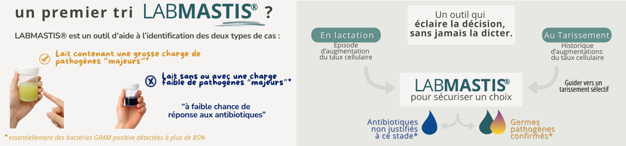 🟢 85% des pathogènes majeurs de mammites traitables par antibiotiques intra mammaires détectables*