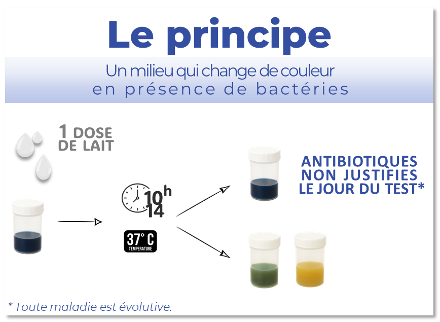 - Pas de changement de couleur = le lait ne contient pas ou trop peu de pathogènes majeurs à ce stade